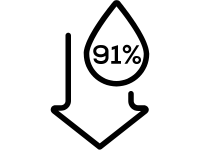 91 % mažiau vandens